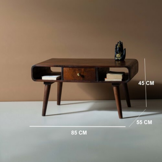 Nordic Style-Curved Chestnut Coffee Table- 2 Drawers -100% Solid Mango Wood