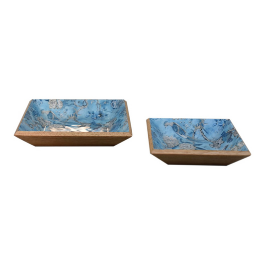 Aztec Oblong Bowl Set of 2 | Handcrafted from Solid Mango Wood
