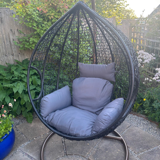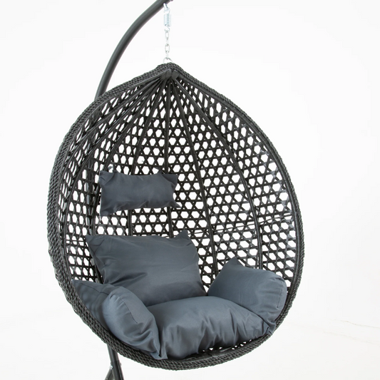 Bella Black Hanging Swing Pod Egg Chair - Large & Deep Grey Cushions