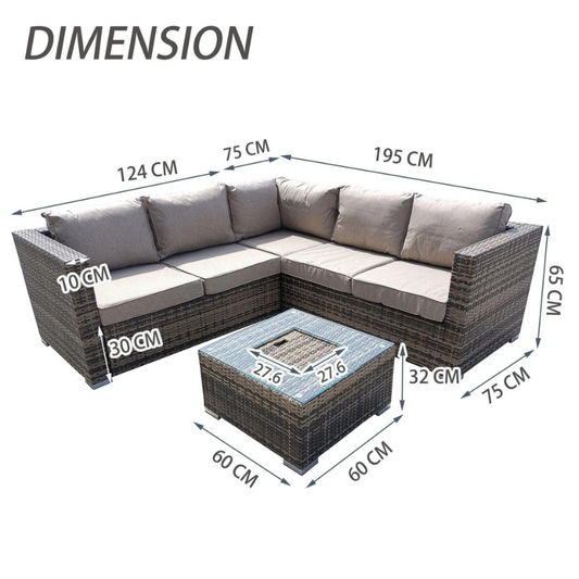 Grey Rattan Garden Furniture 5 Seat Corner Sofa & Ice Bucket Coffee Table Patio Set