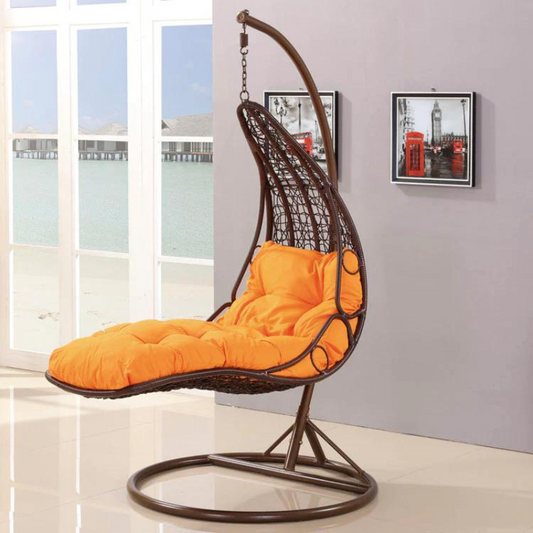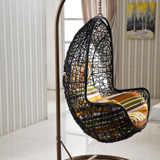 Outdoor-Indoor Rattan Black Wicker Hanging Egg Chair Swing with Stand