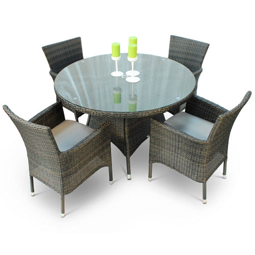 Phuket Rattan Deluxe Outdoor 4 Seat Round Dining Set-Free Dark Grey Cushions