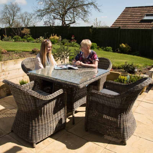 Fiji Rattan Square 4 Seat Glass Dining Set-Free Dark Grey Cushions